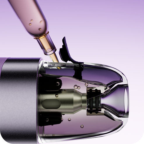 * En vätskebehållare som fylls med e-juice.